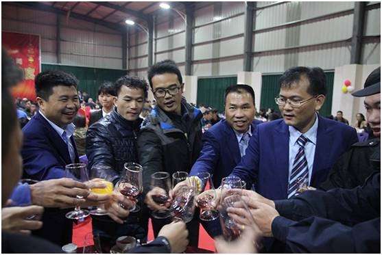 答謝晚宴現(xiàn)場(chǎng)氣氛熱烈,大家舉杯共慶, 集團(tuán)董事長龍其生、總裁龍其偉向大家敬酒,表示感謝。