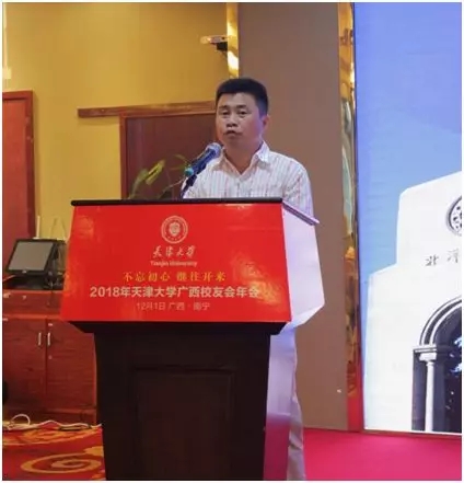 當(dāng)天,龍其生董事長(zhǎng)出席了大會(huì)并致辭,天津大學(xué)校友總會(huì)副會(huì)長(zhǎng)、天津大學(xué)原黨委副書記、紀(jì)委書記汪曣,國(guó)際教育學(xué)院院長(zhǎng)陳志華、遠(yuǎn)程與繼續(xù)教育學(xué)院院長(zhǎng)殷紅春等母校領(lǐng)導(dǎo)出席了大會(huì)并發(fā)言,出席大會(huì)的嘉賓還有天大研究生院綜合管理辦公室主任盧錚松、校友與基金事務(wù)處副處長(zhǎng)谷鈺、自動(dòng)化學(xué)院副教授蘇毅珊以及來(lái)自兄弟高校廣西校友會(huì)的代表。