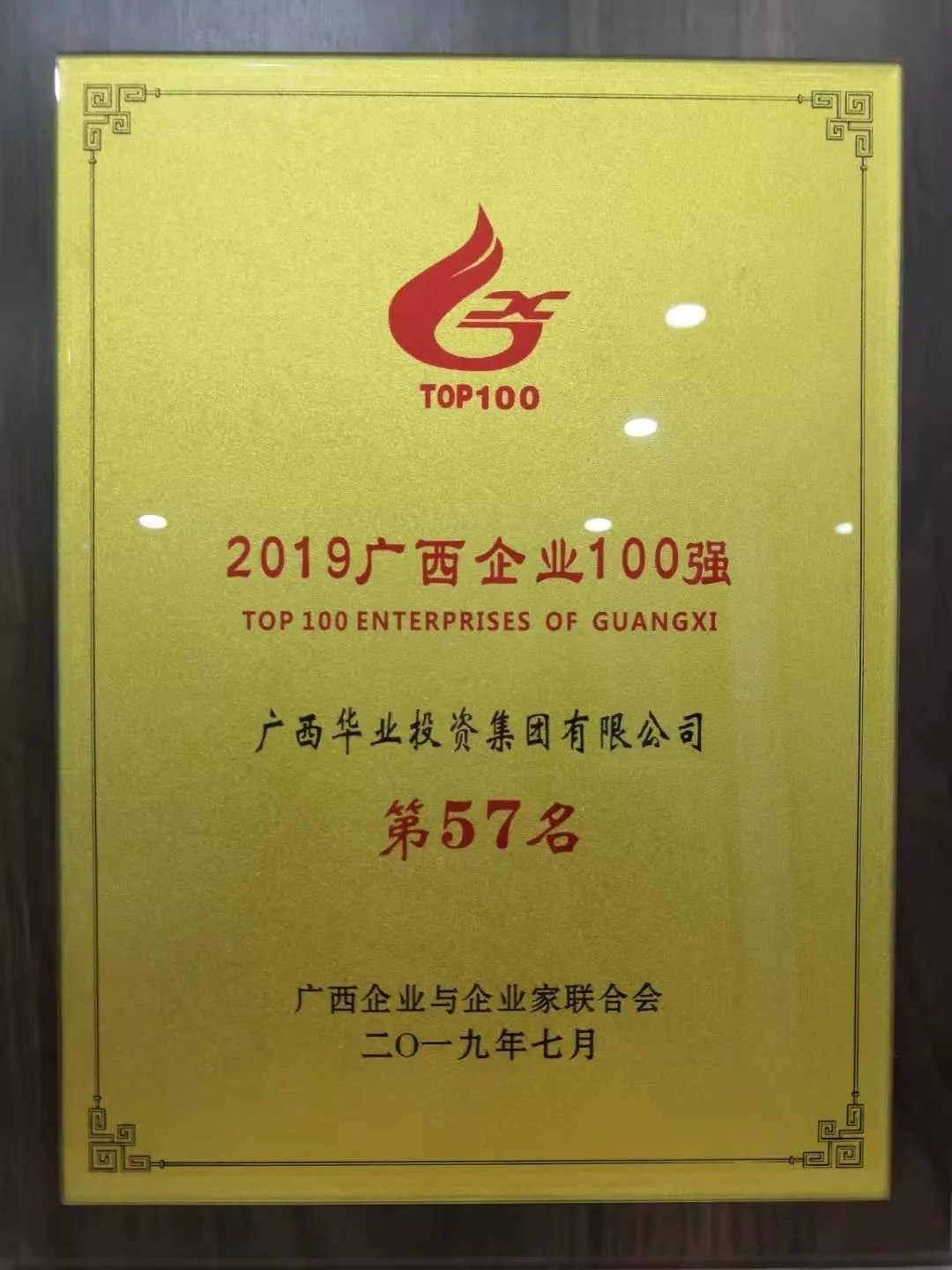 大會發(fā)布了2019年廣西企業(yè)100強等榜單及廣西大企業(yè)發(fā)展主要研究成果。此次評選以2018年企業(yè)營業(yè)收入作為評選標準,共有100家實力雄厚的企業(yè)榮登金榜。其中,廣西華業(yè)投資集團有限公司,憑借營業(yè)收入46.6億元,位列廣西百強企業(yè)第57位,連續(xù)兩年榮獲“廣西企業(yè)100強”榮譽稱號!