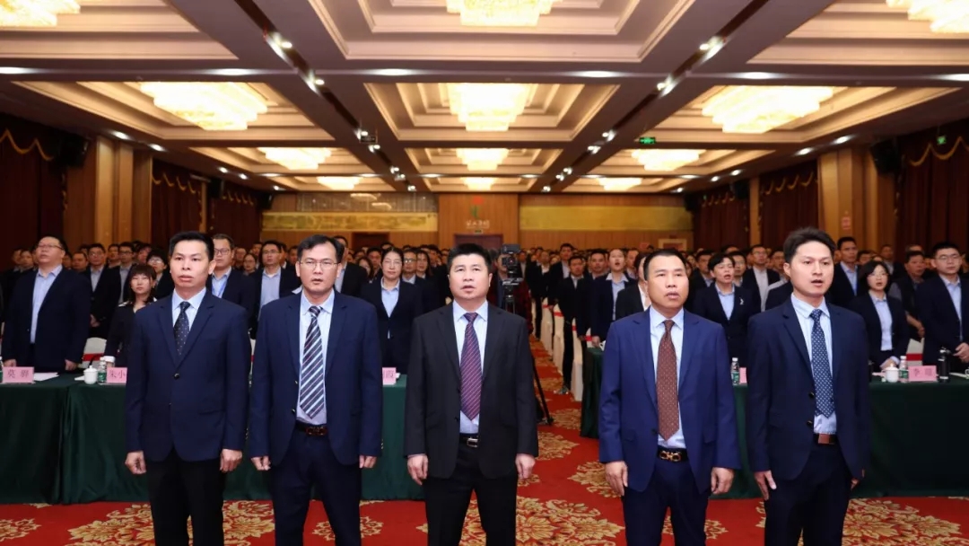 全體與會(huì)人員共同歌唱國(guó)歌和企業(yè)歌曲