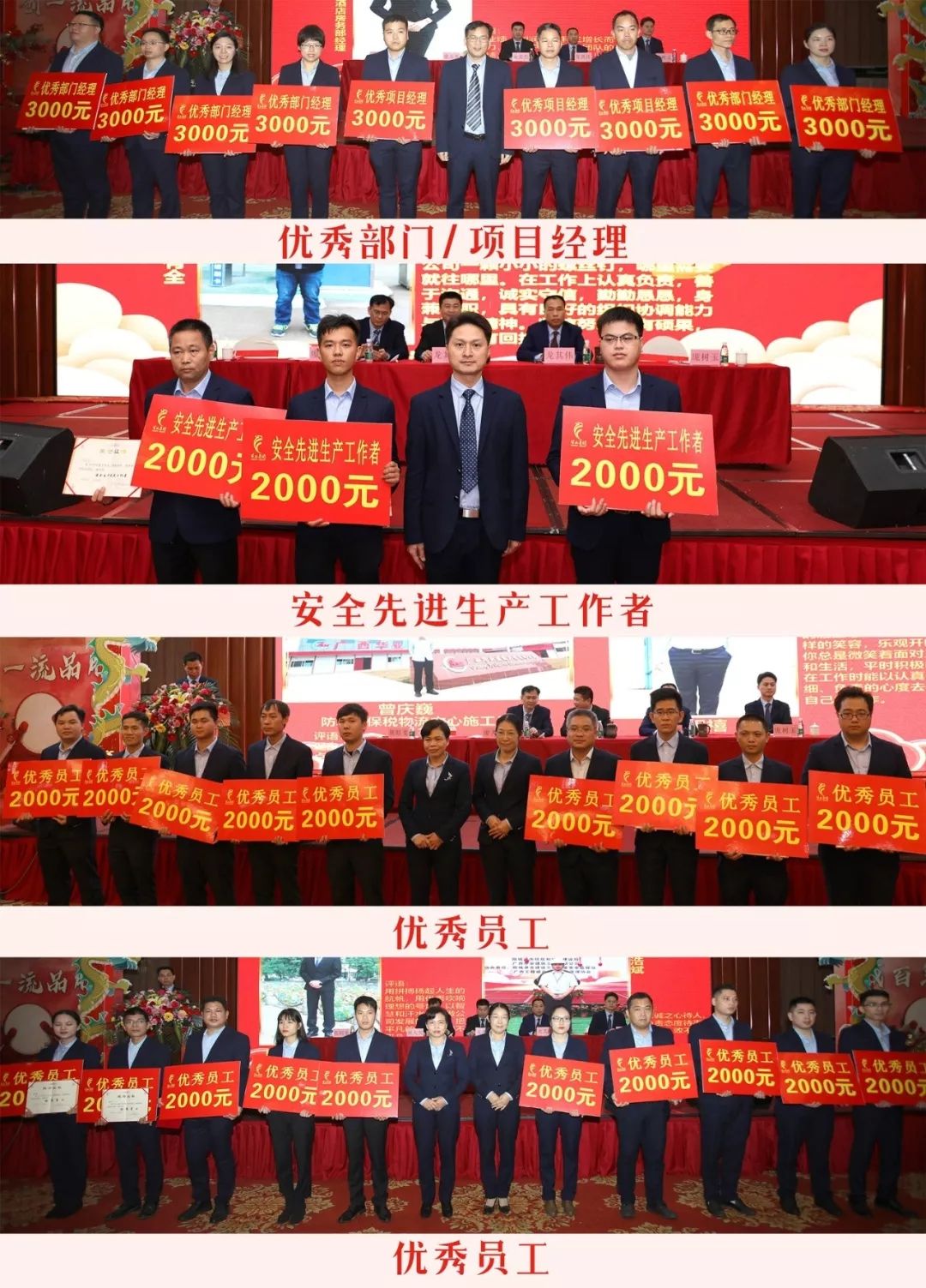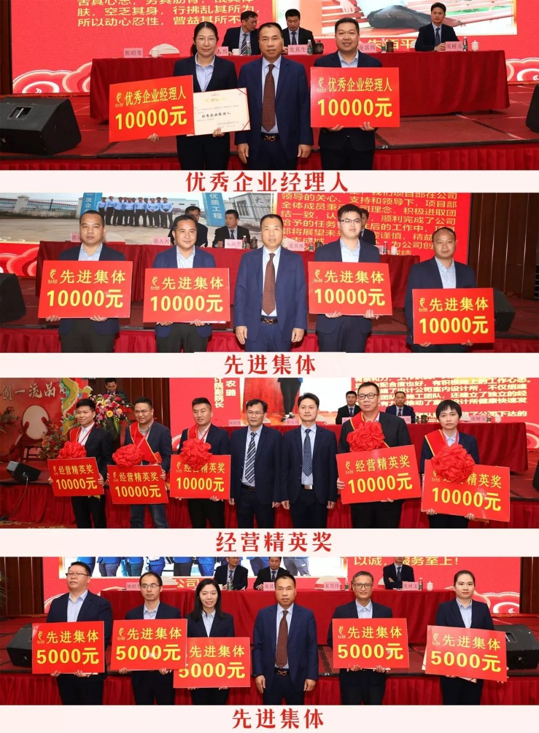 龍其生董事長(zhǎng)宣讀了集團(tuán)2019年度先進(jìn)集體及優(yōu)秀個(gè)人的表彰決定。大會(huì)舉行了隆重的頒獎(jiǎng)典禮,為2019年度工作業(yè)績(jī)突出、表現(xiàn)優(yōu)異的集體及員工進(jìn)行表彰獎(jiǎng)勵(lì)。