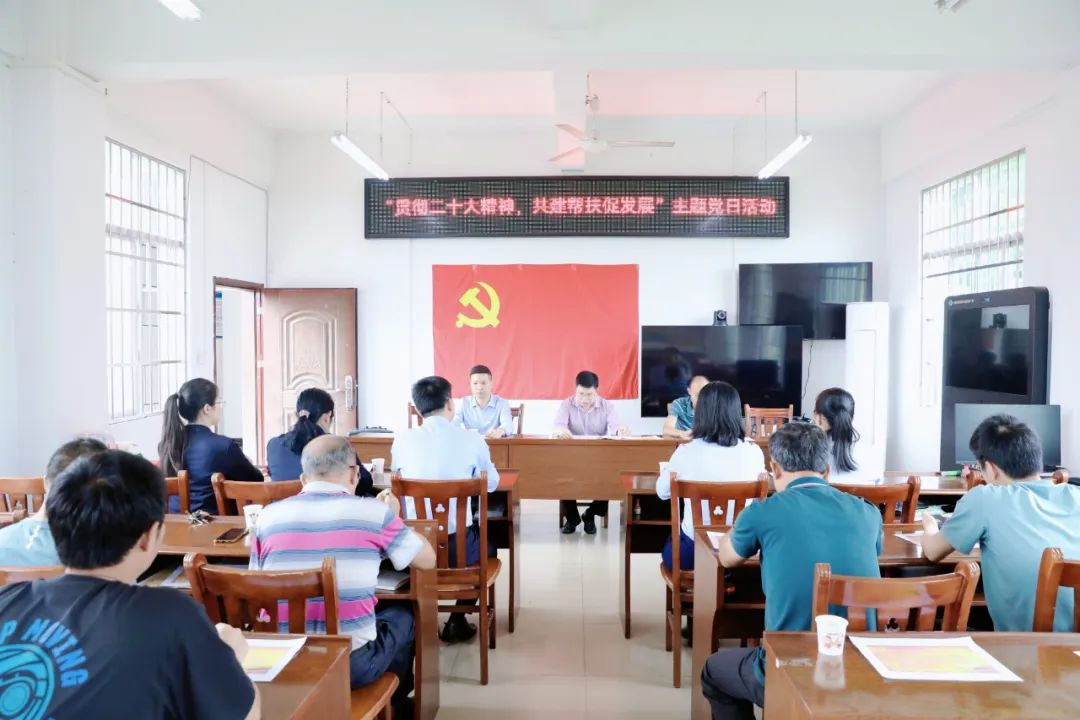 在那樓村委會,防城區(qū)直機關(guān)工委副書記張仲品帶領(lǐng)參加活動的黨員同志們深入學(xué)習(xí)了黨的二十大精神,并就新階段推進鄉(xiāng)村振興工作做了部署安排。