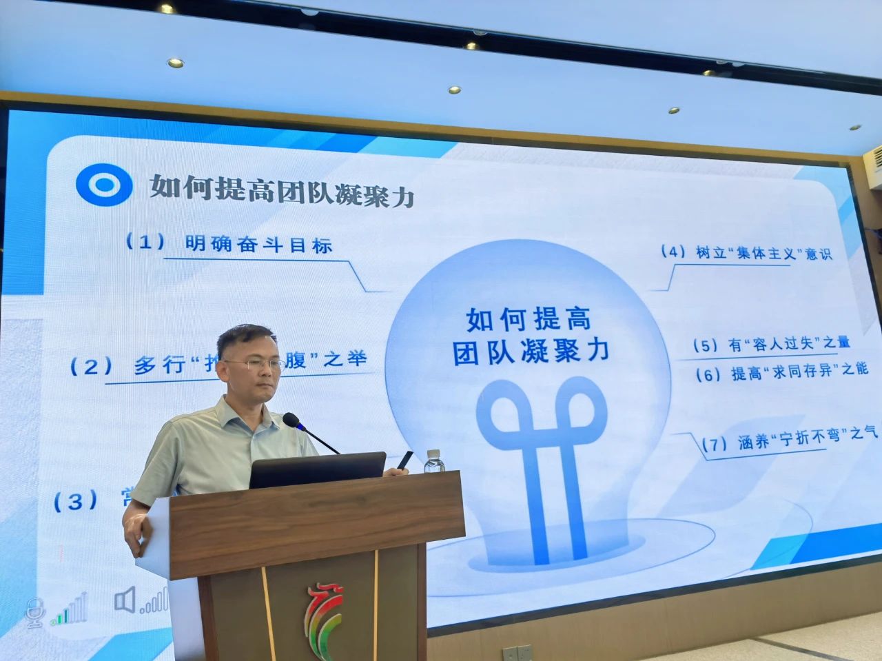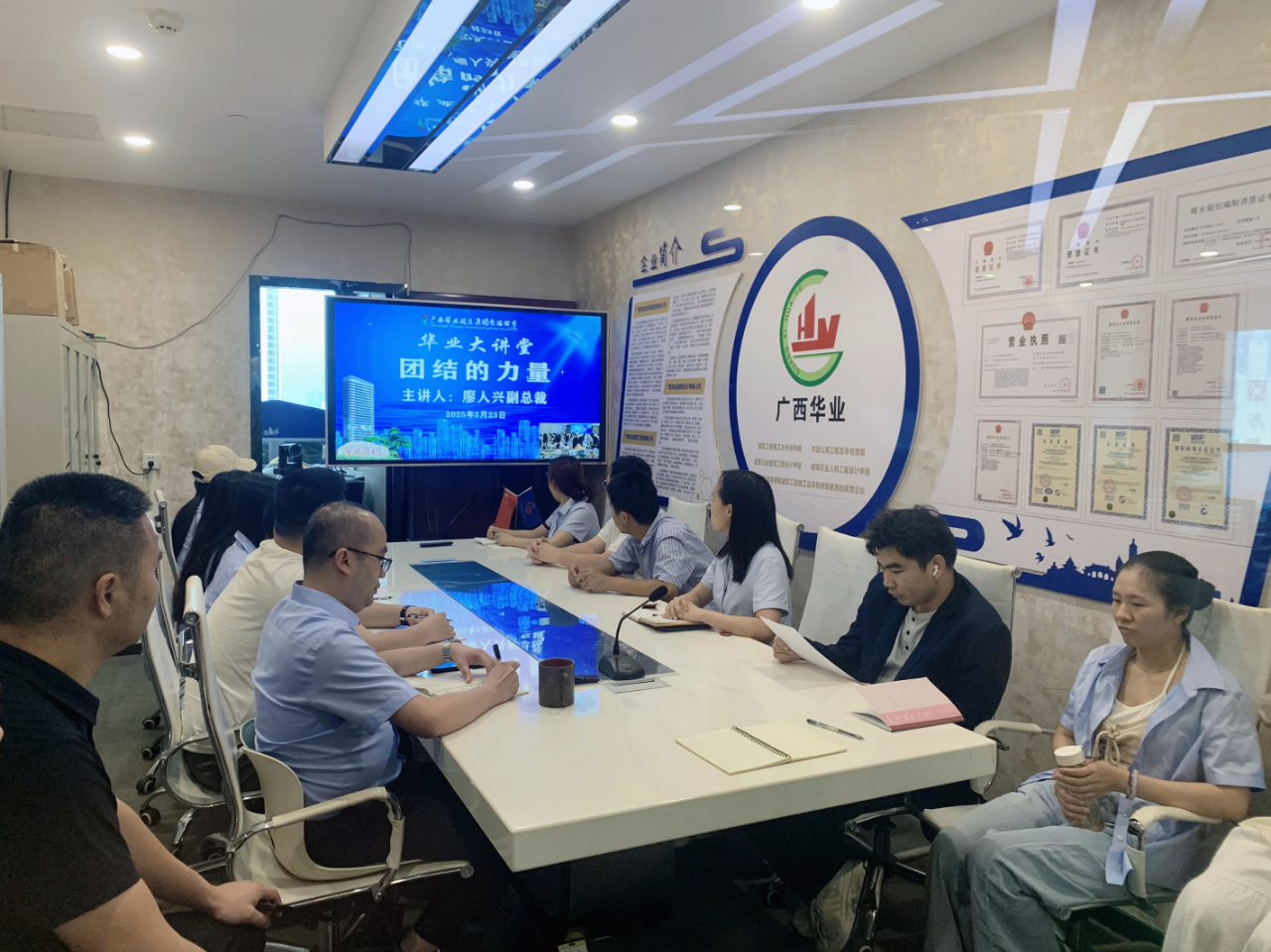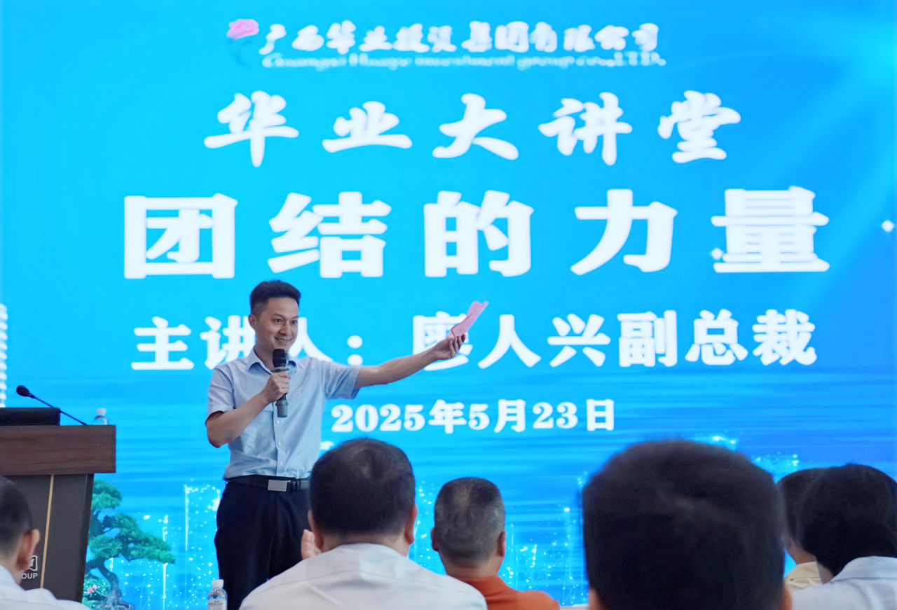 團(tuán)結(jié)是華業(yè)精神的靈魂,團(tuán)結(jié)是華業(yè)文化的基石,團(tuán)結(jié)的力量,在華業(yè)無(wú)處不在。廖人興副總裁從華業(yè)集團(tuán)23年的發(fā)展歷程切入,通過(guò)回顧企業(yè)從十幾人的小團(tuán)隊(duì)成長(zhǎng)為廣西建筑行業(yè)龍頭企業(yè)的奮斗史,生動(dòng)詮釋了“團(tuán)結(jié)”在企業(yè)文化中的核心地位。他提到:“‘人心齊,泰山移’,華業(yè)每一次跨越——從三級(jí)資質(zhì)到特級(jí)資質(zhì)獲取,從百億合同額突破到抗疫緊急任務(wù)完成,無(wú)一不是全體華業(yè)人同心協(xié)力的成果?!迸嘤?xùn)中,廖人興以“藍(lán)灣湖畔項(xiàng)目”“防城港‘小湯山’醫(yī)院建設(shè)”“疫情防控隔離點(diǎn)建設(shè)”等典型案例,展現(xiàn)了華業(yè)團(tuán)隊(duì)“召之即來(lái)、來(lái)之能戰(zhàn)、戰(zhàn)之必勝”的鐵軍精神。